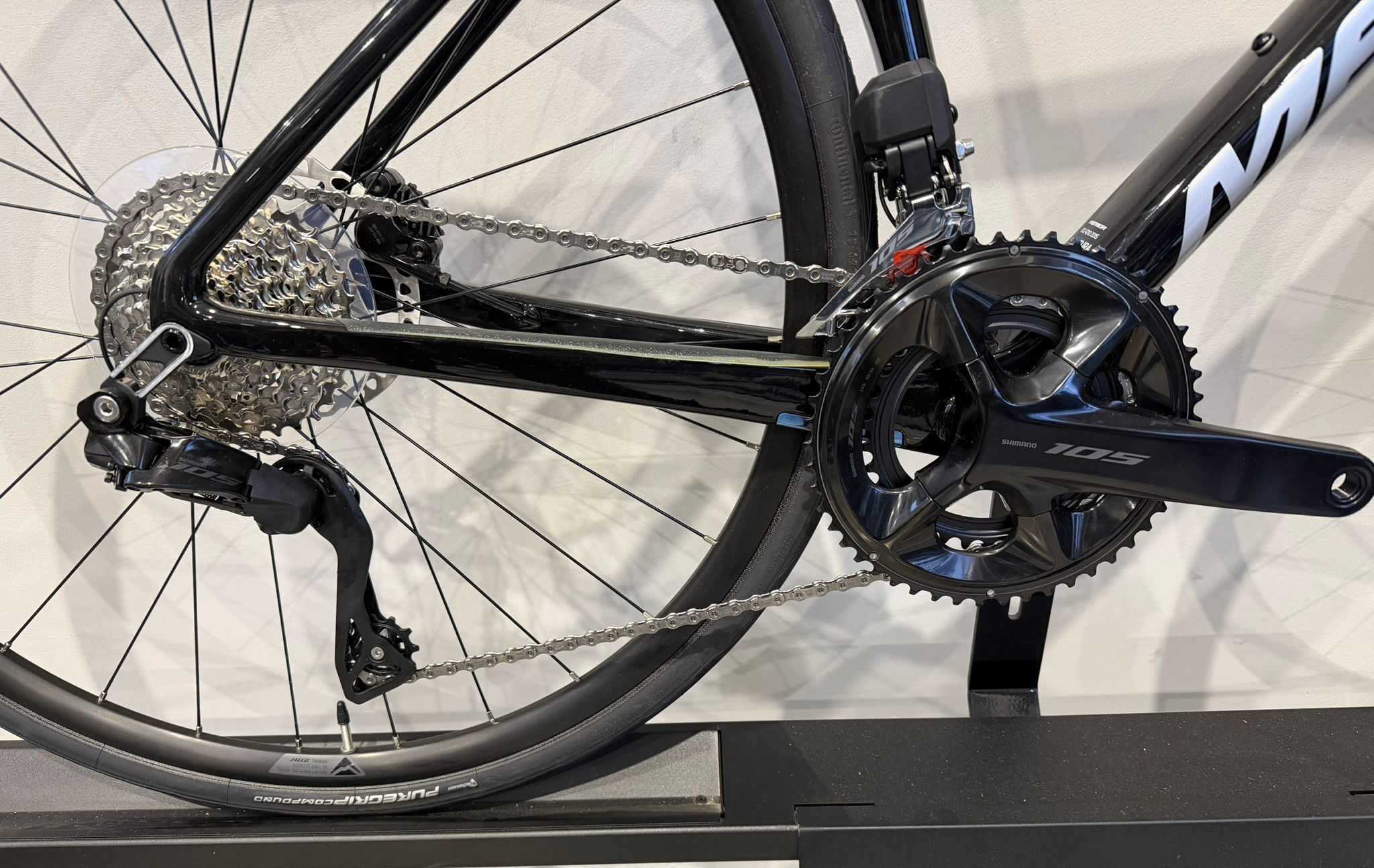 Equipaggiata con la precisa e affidabile trasmissione Shimano 105Di2 12v, ogni cambio marcia è un passaggio morbido e istantaneo, che ti permetterà di concentrarti unicamente sulla bellezza del paesaggio che ti circonda. I freni a disco idraulici Shimano offrono una potenza frenante sicura e modulabile in ogni condizione atmosferica, garantendoti il controllo totale in ogni situazione, dalle discese più ripide alle curve più strette.